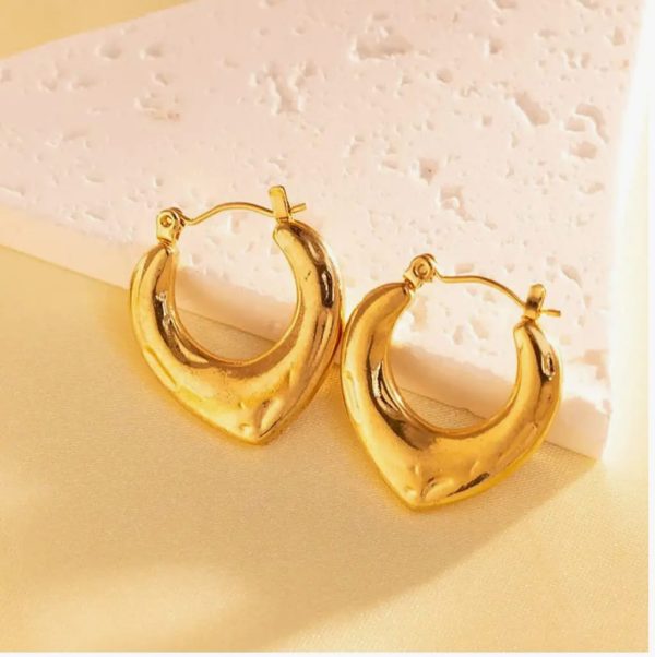 Gold-Plated Heart-Shaped Hoop Earrings | Stainless Steel Chunky Design Earrings for Girls & Women