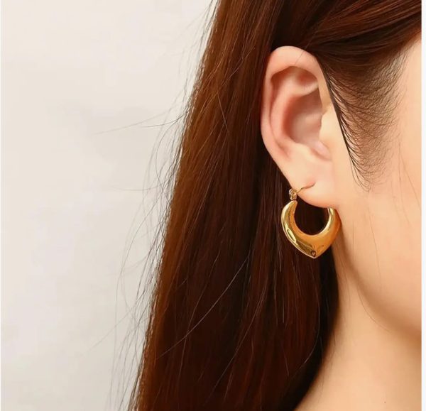 Elevate your style with Korean Gold-Plated Heart-Shaped Hoop Earrings, which adding a timeless statement to your jewellery collection. It is crafted from premium quality stainless steel for lasting durability and shine, ensuring a perfect accessory for all day wear. Their sleek, geometric V-shape design adds a bold yet elegant touch to any outfit, making them perfect for everyday wear, parties, and special occasions. These earrings are lightweight, hypoallergenic, and tarnish-resistant, ensuring a comfortable fit and a long-lasting shine. These earrings provide a trendy look without compromising comfort, making them suitable for any occassion like birthdays, anniversaries, or festive occasions.